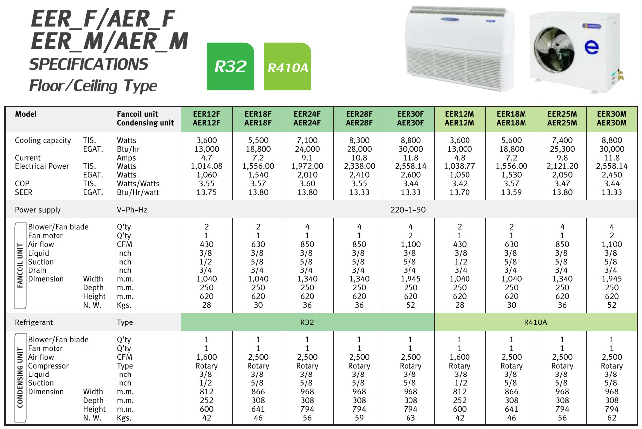 | EER30M | 30000 | R410A | 32,000 | 1 เฟส |