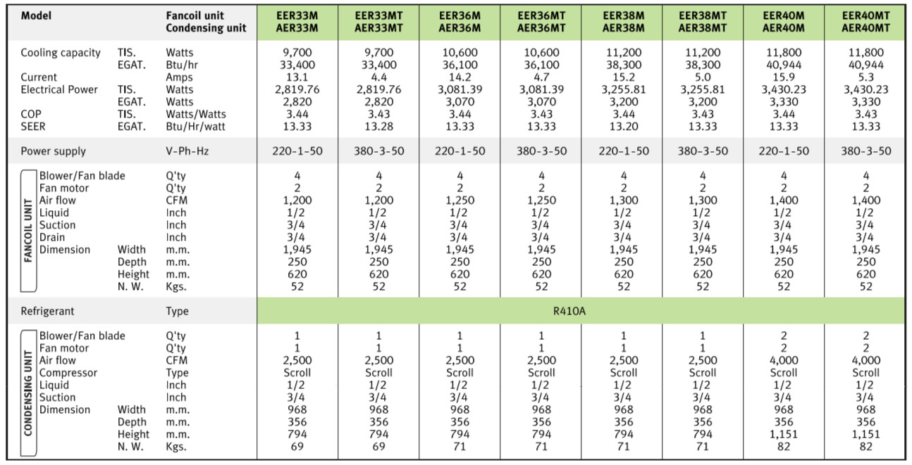 | EER33M | 33400 | R410A | 40,000 | 1 เฟส |