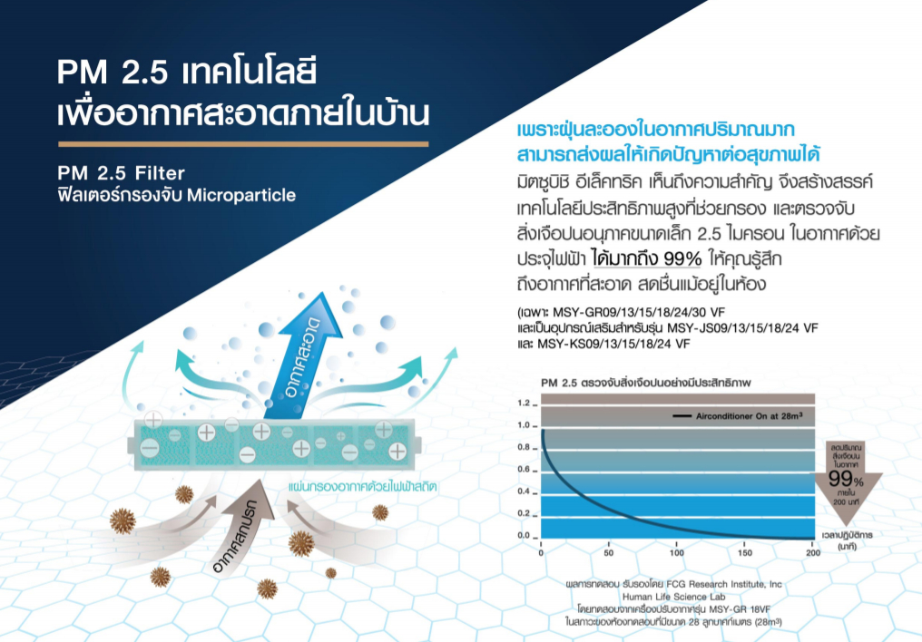 • PM 2.5 เทคโนโลยีเพื่ออากาศสะอาด ช่วยกรองและตรวจจับสิ่งเจือปนอนุภาคขนาดเล็ก 2.5 ไมครอนในอากาศด้วยประจุไฟฟ้า